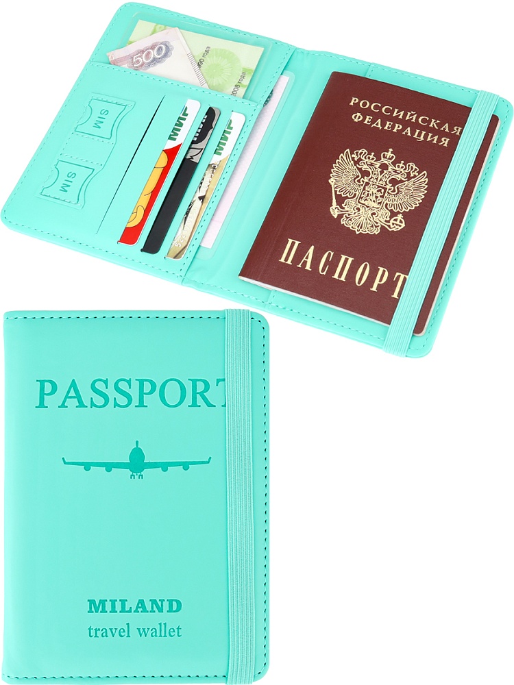 Обложка на паспорт с отсеком для карт на резинке «Отпуск» зеленая ОП-9625