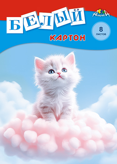 Картон белый А4 8л Белый котенок папка Апплика 7472