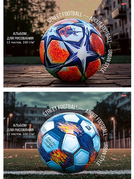 Альбом для рисования 12л. РАЗНЫЕ ФУТБОЛЬНЫЕ МЯЧИ — 6 (12-7251), 2диз в сп