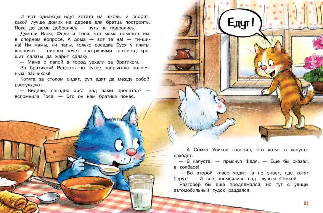 Так в доме Котофеевых поселилась настоящая радость — ожидание младшего брата. И котятам предстоит многому научиться. Очень ответственно быть старшими: Тося планирует выучить английский, Федя — тренирует кунг-фу, а Вася хочет стать самым сильным и смелым.