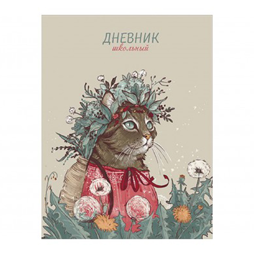 Дневник д/шк 1-11 класс 48л КОШКА В ВЕНКЕ твердый переплет 7БЦ полноцветная печать глянцевая пленка арт.110050