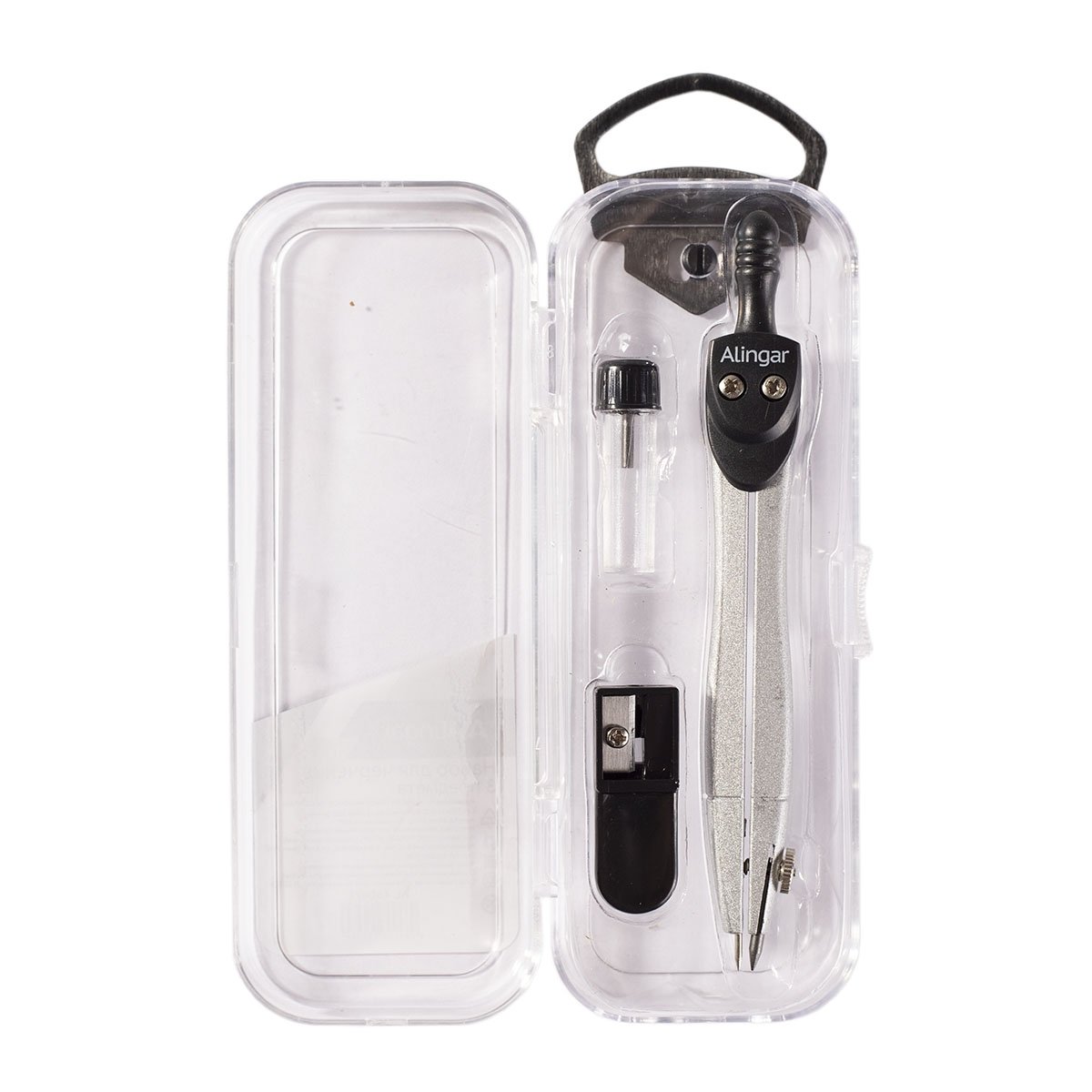 Готовальня 3 предмета металлический циркуль 82 мм грифель точилка пластиковый футляр европодвес чёрный Alingar