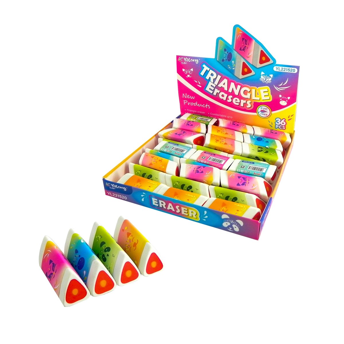 Ластик Yalong «Маски животных» 50*20*20 мм синтетический каучук трехгранный ассорти