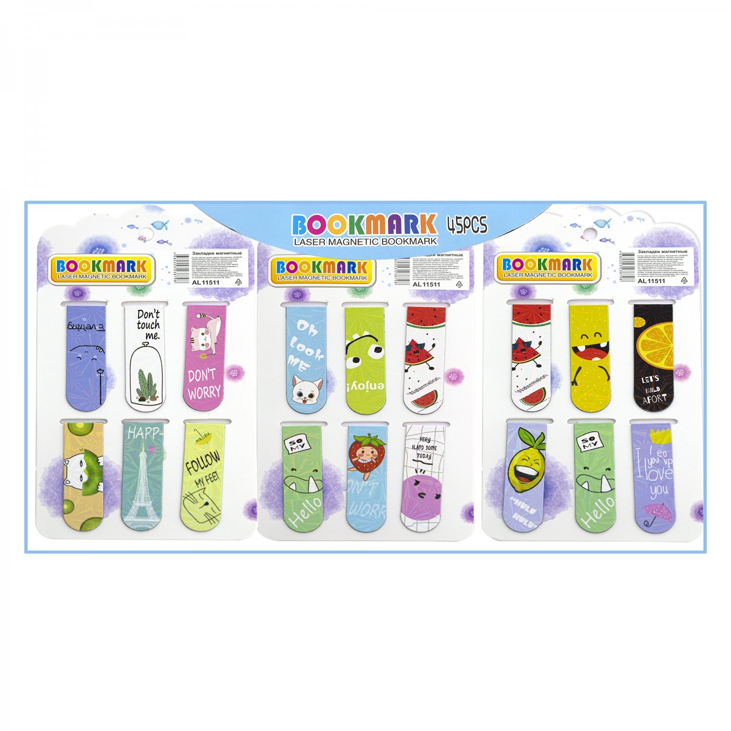 Набор магнитных закладок 6шт Alingar 120х20 мм «Ассорти» (монстирики,фрукты,кошечки) европодвес