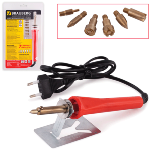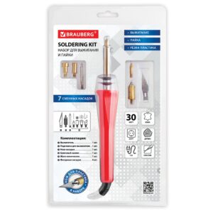 Набор для выжигания и пайки BRAUBERG 6 насадок + нож для резки пластика Красный блистер 150621