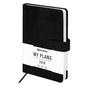 Ежедневник датированный 2026 А5 138×213мм BRAUBERG Legend, под кожу, застежка, черный, 117070
