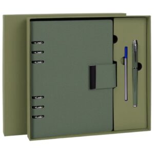 Ежедневник на кольцах в наборе с ручкой А5 165×229мм BRAUBERG Lux под кожу, 100л, зеленый, 116858