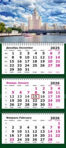 Календарь квартальный настенный 2026 трехблочный «Государственная символика» 195*495 КМ06-26