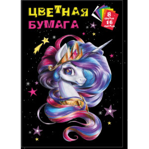 Цветная бумага 16л 8цв «Радужный Единорог»немелованный односторонняя на скрепке 71553