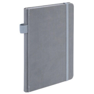 Блокнот А5 135×212мм 80л клетка BRAUBERG Edge под кожу резинка держатель серый 117146