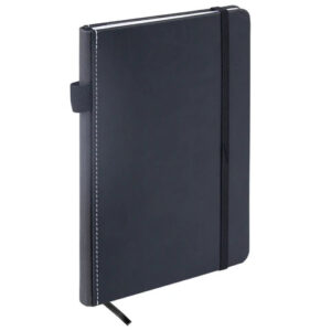 Блокнот А5 135×212мм 80л клетка BRAUBERG Edge под кожу резинка держатель черный 117145